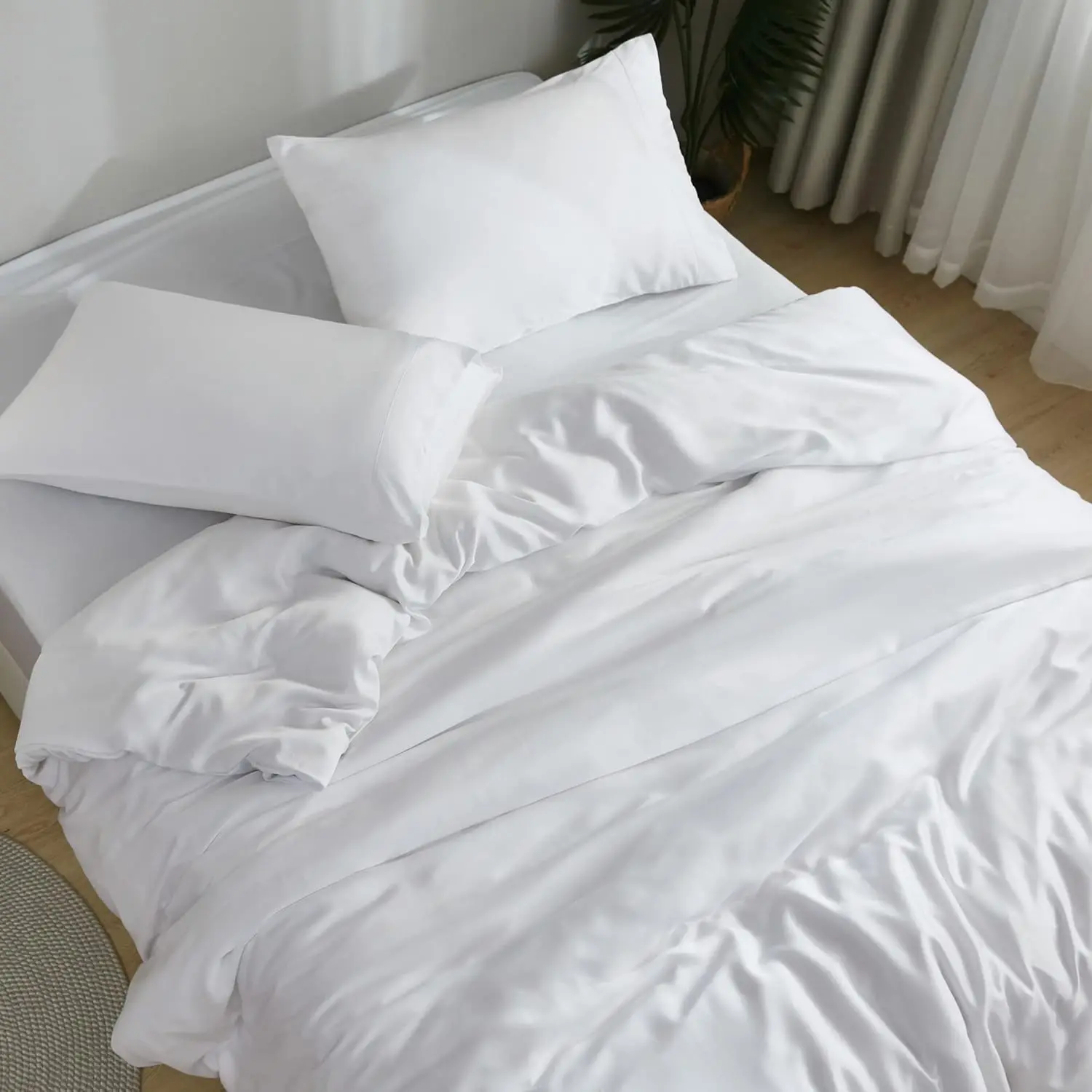 Wholesale 100% Bamboo Bedding Set White Full Size Flat Sheet Fitted Sheet Plain Solid Style for Home Hospital Use