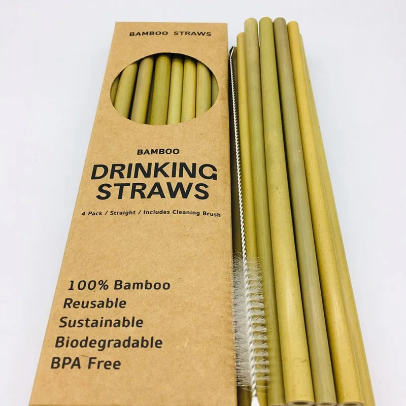 Premium Handcrafted Organic 8" Bamboo Drinking Straws. Set of 12 Biodegradable and Reusable Straws W/brush and Travel, BPA Free