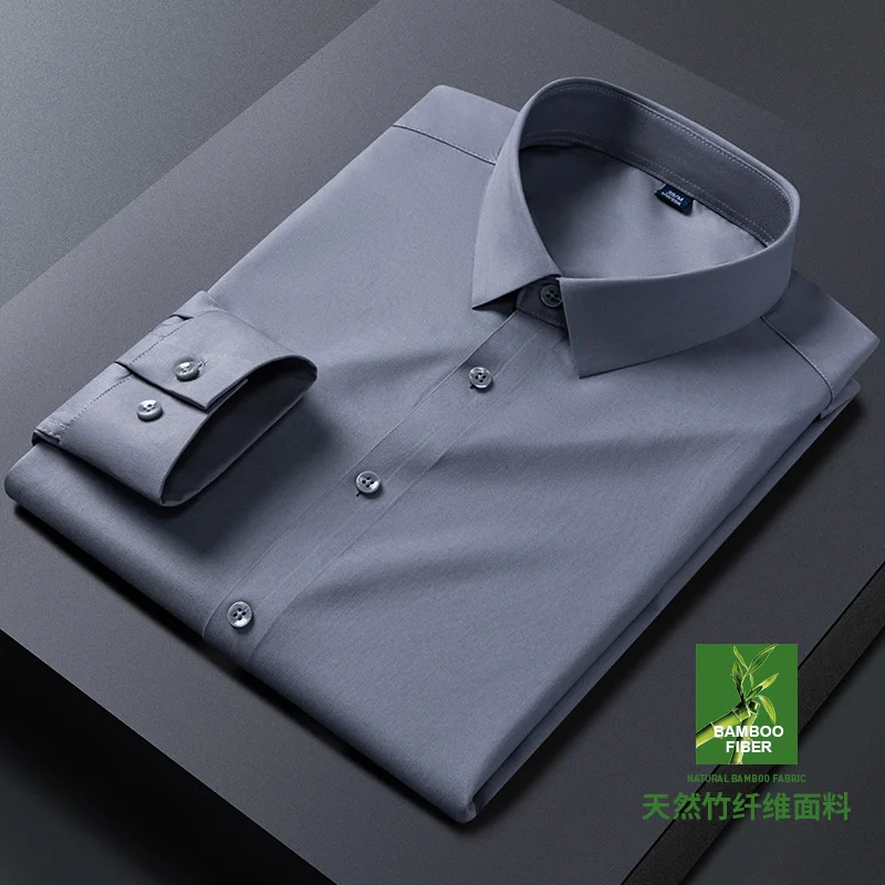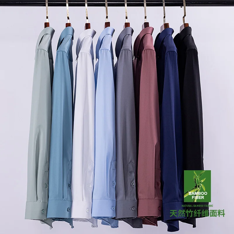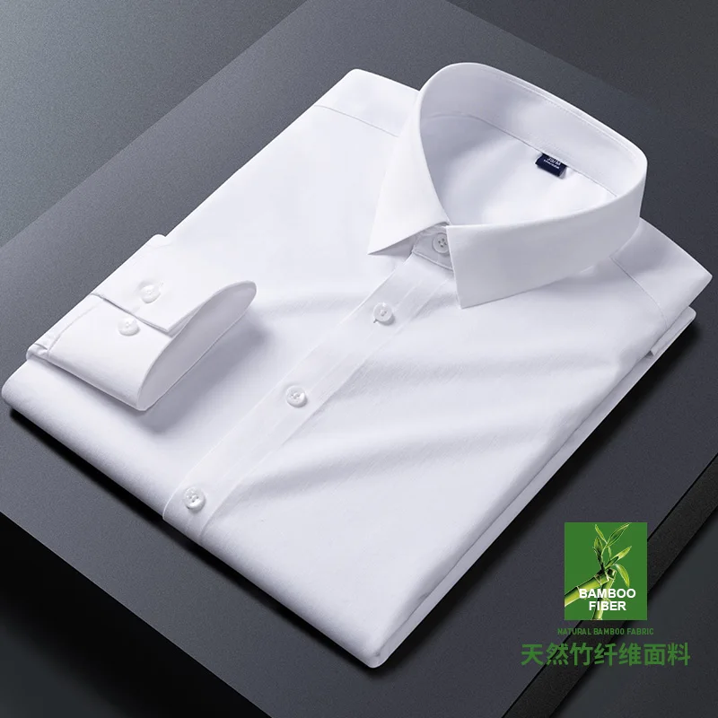 Bamboo Fiber Stretch Anti-Wrinkle Men's Shirt Long Sleeve Dress Shirt Slim Fit Social Business Shirt White Shirt 5XL