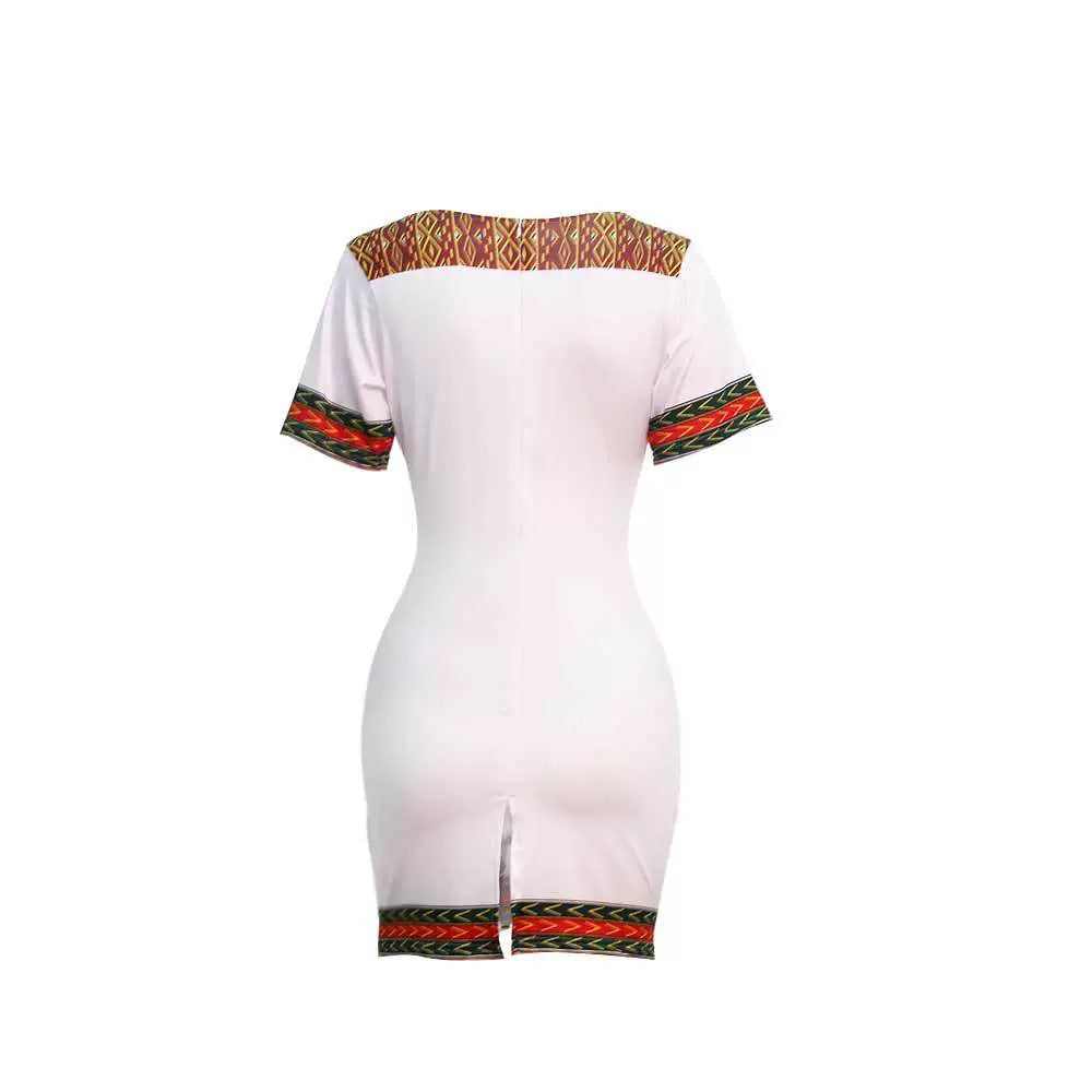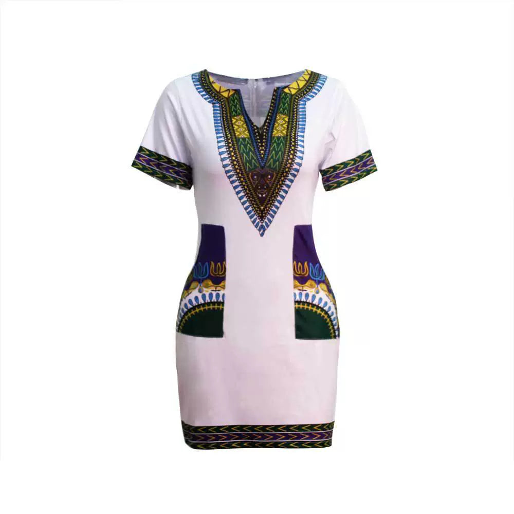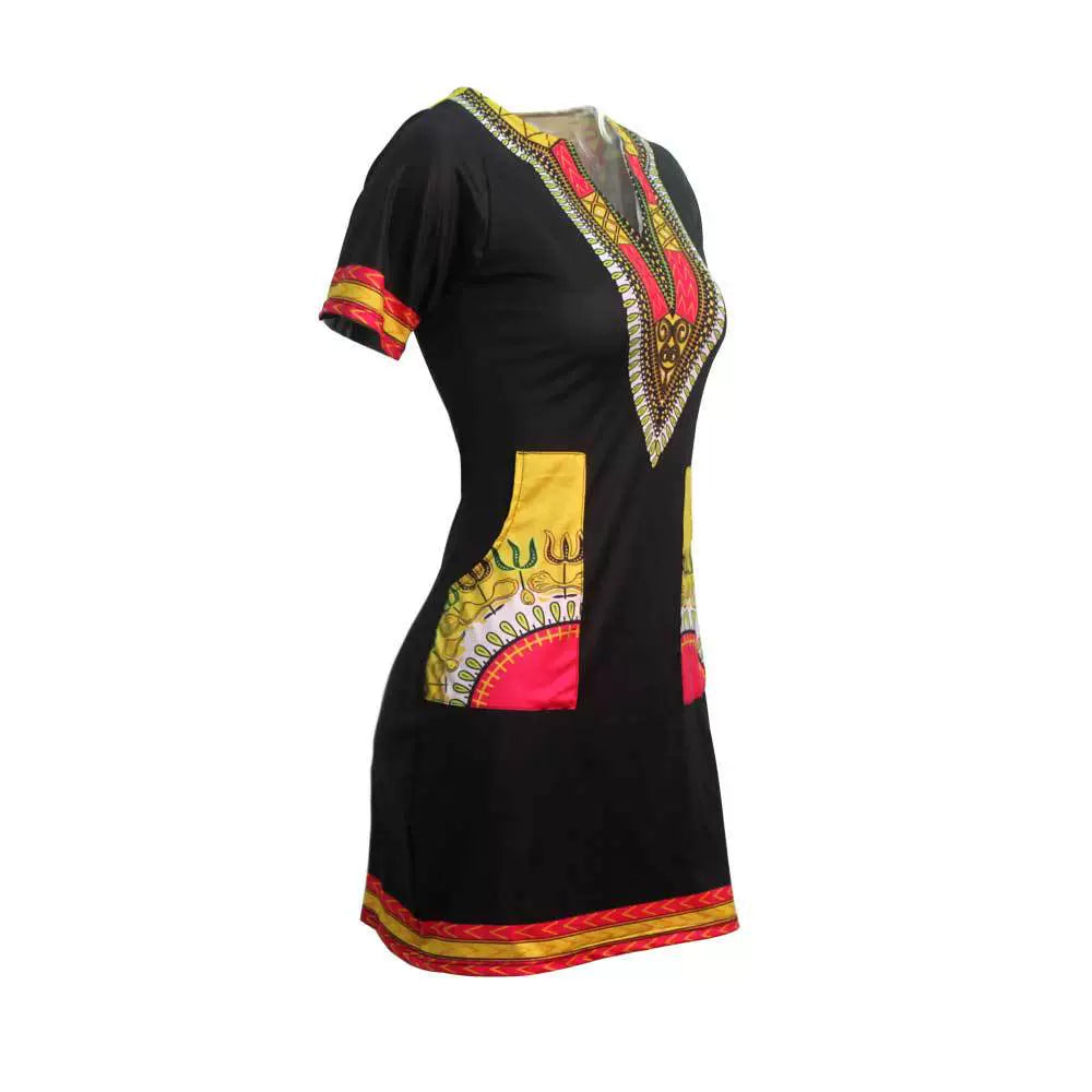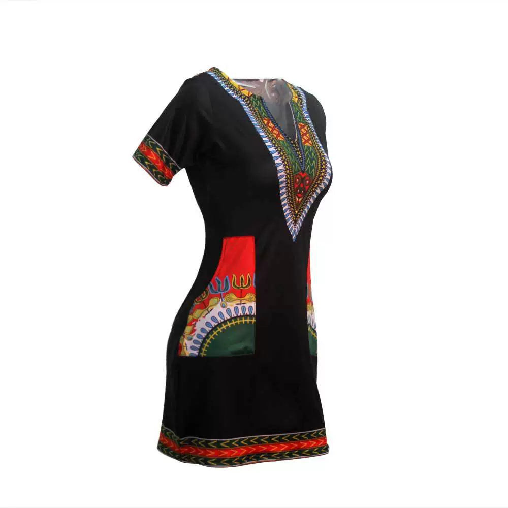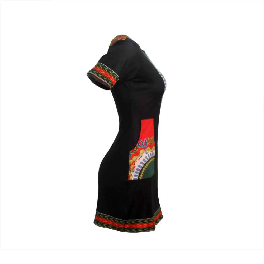 Women African Print Female Dress plus Size Sexy Short Sleeve Short Dress